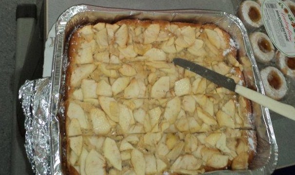 Ingredienti: 250 grammi di farina, 125 grammi di zucchero, 125 grammi di burro, 2 uova, un pizzico di sale, cannella, vaniglina (o scorza di limone grattugiata), un bicchiere scarso di latte, lievito artificiale per torte (meno di una bustina), qualche mela (tre in genere bastano).