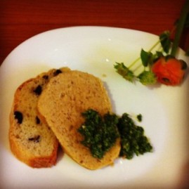 (nella foto è con pane alle olive e pesto di rucola)